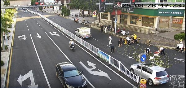 事發(fā)當(dāng)時正值交通高峰,車流密集。金黃色的百香果滾落一地,不僅造成了經(jīng)濟(jì)損失,更帶來巨大的安全隱患。貨車司機緊急停車后,面對滿地狼藉,一時不知所措。危急時刻,一群路過的年輕人瞬間涌了上來。大家七手八腳,迅速幫忙撿拾。路過的幾輛小車也紛紛停下,幫忙攔停車流,快速隔離出一塊“安全地帶”。