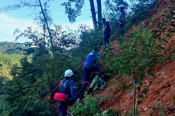 接警后,武平縣藍天救援隊迅速響應,集結20余名隊員趕赴現(xiàn)場。救援隊在山中發(fā)現(xiàn)老人遺留的木柴,但由于山林地形復雜、荊棘密布,首輪搜索未果。