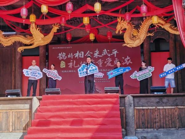 8月29日,由武平縣委宣傳部、縣民政局、縣文體旅游局聯(lián)合主辦的以“鵲橋相會來武平 禮輕情重愛更濃”為主題的抵制高額彩禮·弘揚婚俗新風宣傳教育活動在新時代文明實踐特色點——武平縣中山鎮(zhèn)百家大院舉行??h領(lǐng)導(dǎo)李小飛、胡陽基、陳永榮、廖志新、林杭英及“零彩禮”新人代表,相關(guān)部門、企業(yè)、社會組織代表等參加活動。