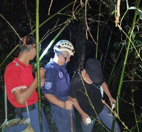 救援隊緊急召集隊員,迅速進山搜尋。在漆黑的深夜,穿越茂密的樹林,踏過崎嶇的山路,前后歷經(jīng)4小時,成功將被困人員安全帶下山。