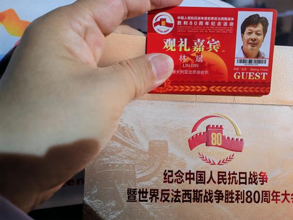 9月1日至4日,澳大利亞北京會會長、武平籍華人林斌應(yīng)邀在北京參加紀(jì)念中國人民抗日戰(zhàn)爭暨世界反法西斯戰(zhàn)爭勝利80周年大閱兵系列活動。
