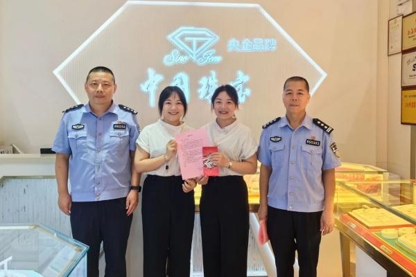 為弘揚(yáng)社會正能量,事后,平川派出所民警專程前往兩家黃金珠寶店,上門為店鋪工作人員送上“表揚(yáng)信”,感謝她們對反詐工作的支持。