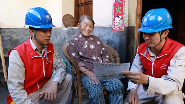 9月28日,國家電網(wǎng)福建電力(武平古田之光)“雙滿意”共產(chǎn)黨員服務(wù)隊隊員鐘毅鵬、王海濤踏來到七坊老城區(qū)91歲獨(dú)居老人鐘冬榮家中,開展節(jié)前用電安全檢查。
