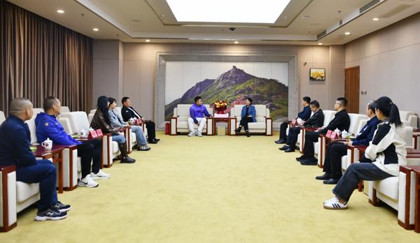 會見中,張麗華與林峰及其家人、教練團(tuán)隊代表親切交談,關(guān)切詢問其參賽歷程、訓(xùn)練及生活情況,希望林峰同志永葆初心、再接再厲,以全運會銀牌作為新的起點,爭取站上更高獎臺,再創(chuàng)佳績。主動做好“傳幫帶”,把賽場上的寶貴經(jīng)驗、抗壓技巧、戰(zhàn)術(shù)思維分享給更多家鄉(xiāng)體育健兒,為武平體育事業(yè)發(fā)展貢獻(xiàn)力量。繼續(xù)發(fā)揮橋梁紐帶作用,更多地宣傳家鄉(xiāng)、推介家鄉(xiāng),當(dāng)好武平代言人。