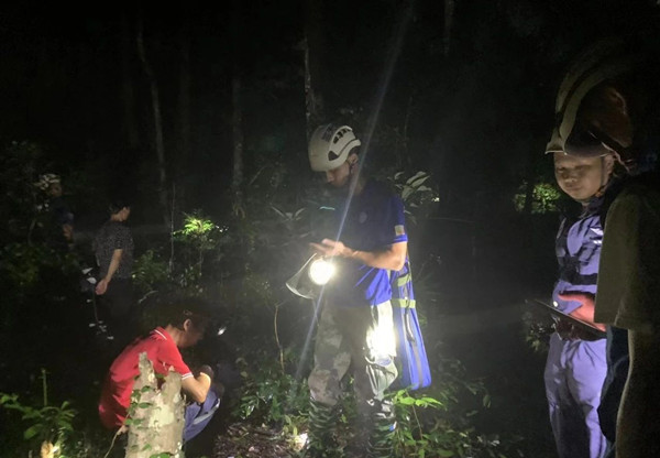 救援隊緊急召集隊員,迅速進山搜尋。在漆黑的深夜,穿越茂密的樹林,踏過崎嶇的山路,前后歷經(jīng)4小時,成功將被困人員安全帶下山。